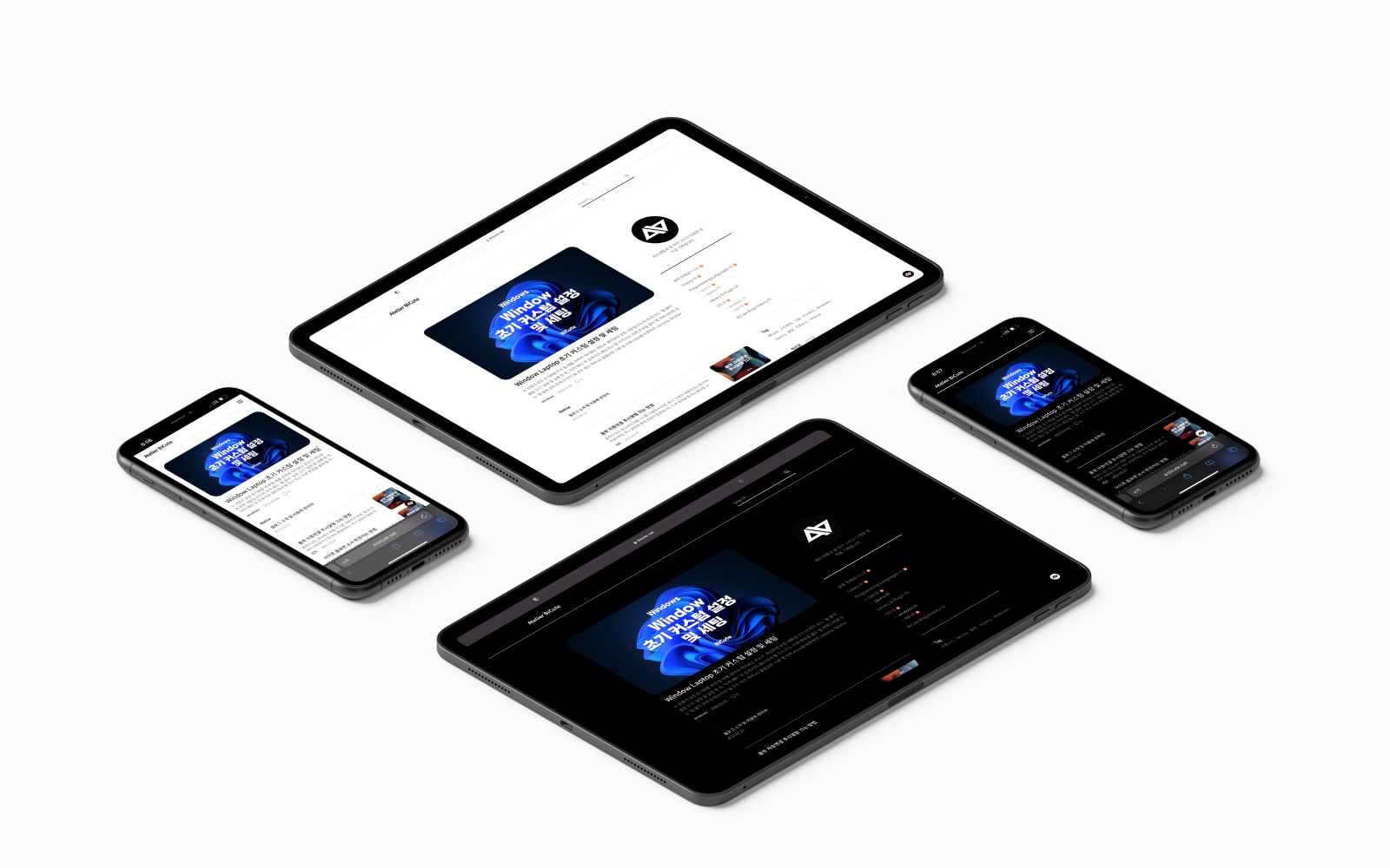 반응형, 자동목차 생성, 다크모드, 페이지 로딩 속도를 위한 코드 최적화 작업 등.